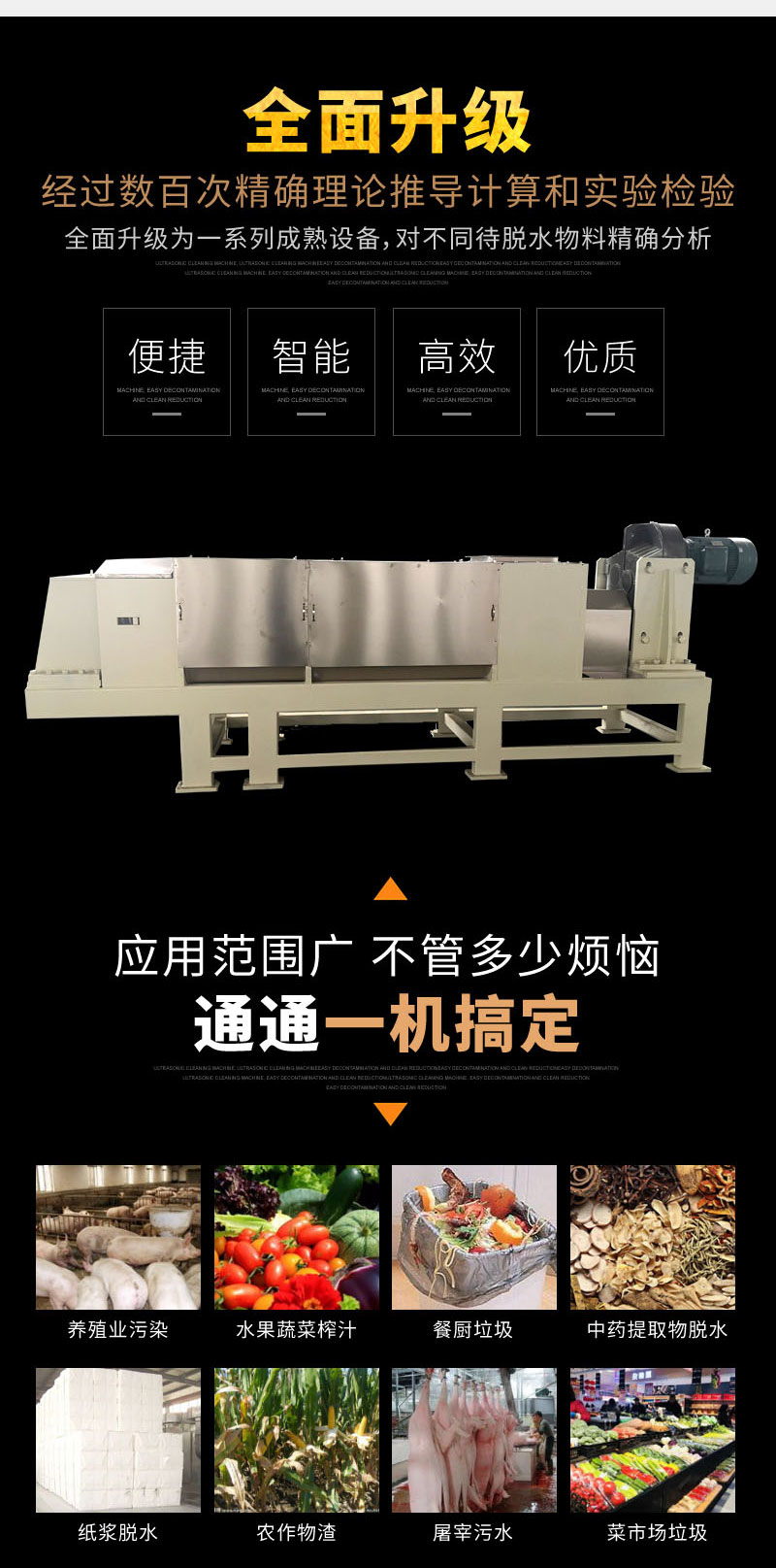 由于待脫水物料種類繁多,不同物料的含水率、分子水比例、粘度、纖維含量、吸水性、韌性、有機(jī)物或無機(jī)物等等數(shù)據(jù)各有不同,我公司工程師會(huì)根據(jù)每一位客戶提供的待脫水的物料進(jìn)行分析,計(jì)算出適用于該物料的參數(shù),制作出適合的設(shè)備,將物理壓榨作用利用到**,降低擠出物料含水率。